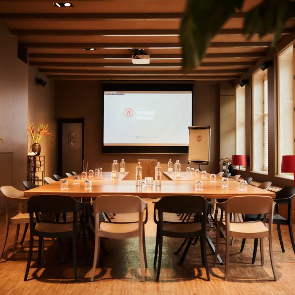 De Prinsenzaal van 80 vierkante meter is rustig gelegen aan de voorzijde van Prinsenhof. De zaal heeft uitzicht op zowel het Martinikerkhof, de iconische Martinitoren als het terras op de binnenplaats en heeft veel direct daglicht. Bovendien is de zaal van alle nodige hedendaagse presentatiemiddelen voorzien.
